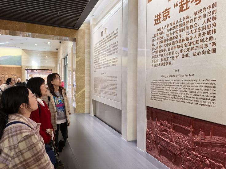 重温“赶考”精神,就是要我们始终保持谦虚谨慎、不骄不躁的作风,始终保持艰苦奋斗的优良传统,勇于面对新征程上的各种风险挑战。通过此次沉浸式的学习参观,教师党员深感责任重大,表示要以“赶考”的心态,答好“为党育人、为国育才”的时代考卷,教育引导青年学生坚定理想信念,练就过硬本领,投身强国伟业。作为新时代的“赶考”青年,学生党员们也表示将传承红色精神,以青春之我、奋斗之我,为强国建设添砖加瓦。