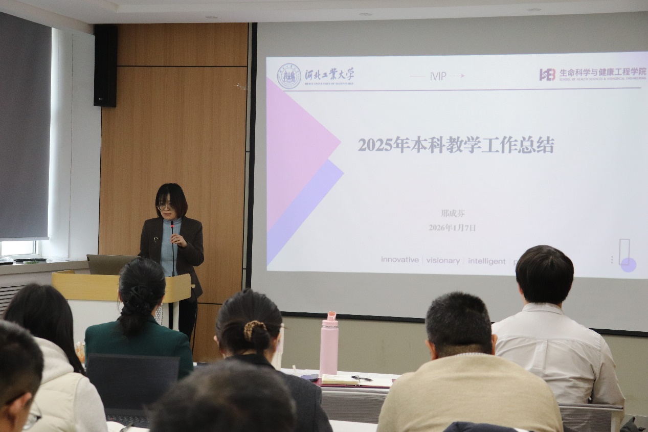 副院长邢成芬介绍了学院一年来聚焦本科教学工作课堂质量与专业建设,完成了智能医学工程联合培养、培养方案修订及新专业预申报,持续加强教学管理、课程思政与教师培训,并牵头成立了产教融合共同体,荣获多项教学成果奖。同时,她指出当前课程内容的前沿性与教学吸引力等方面仍需提升,为学院后续教学改进明确了方向。