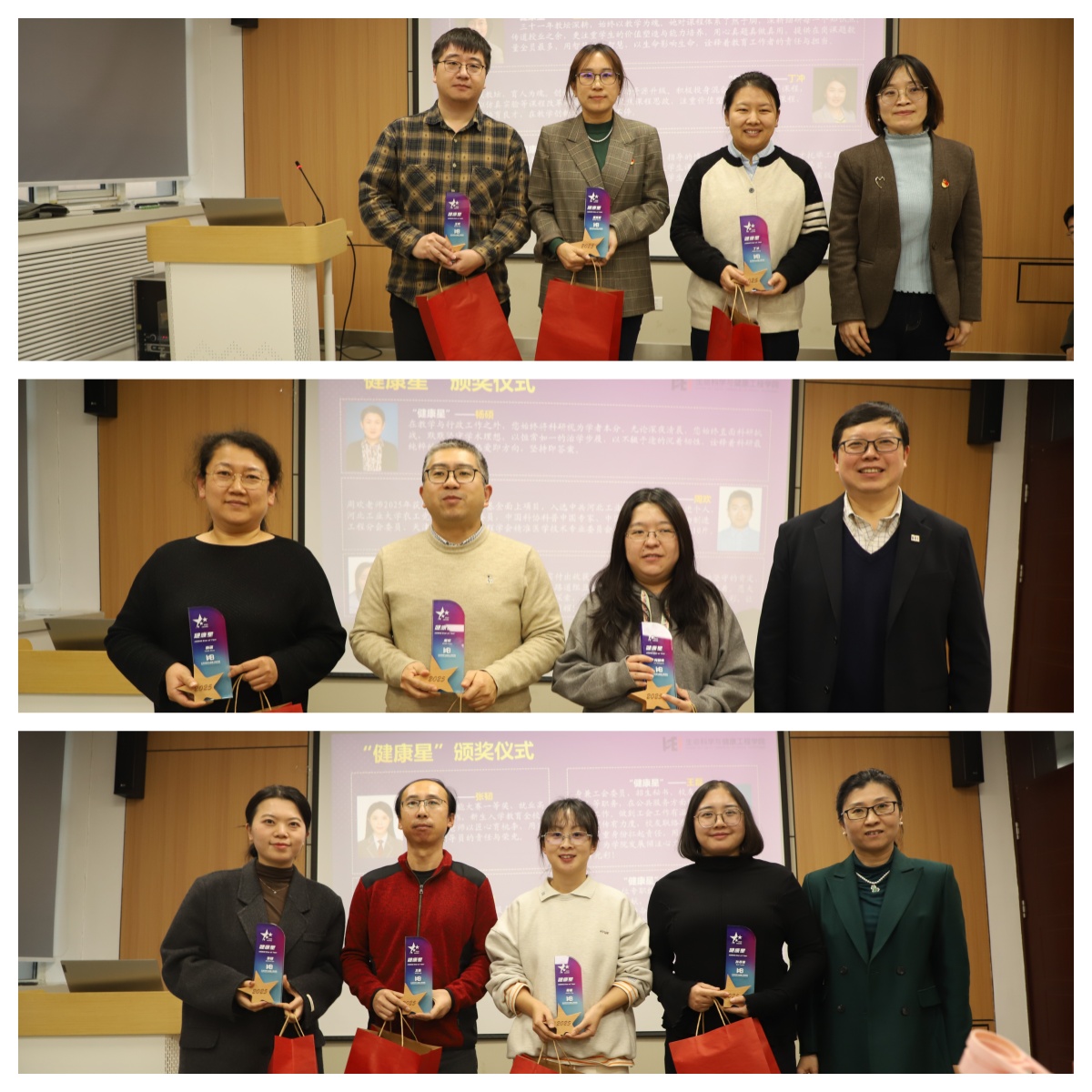 随后举行的2025年度“健康星”颁奖仪式将会议气氛推向高潮。该奖项旨在表彰过去一年在教学、科研、公共服务等方面为学院发展作出突出贡献的教师。学院领导为获奖教师颁发了奖杯与奖品,致敬他们以初心践行使命、以实干诠释担当,为全院教职工树立了榜样。