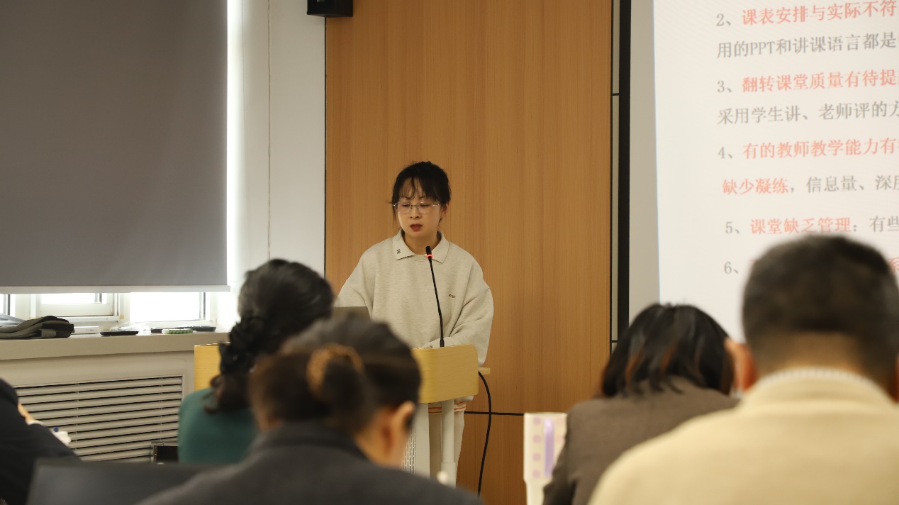 院长助理蒋婧围绕研究生培养工作进行汇报。她指出,学院坚持质量与规范并重,针对课堂教学、培养流程、学术训练等环节存在的问题,系统强化过程管理。下一步,学院将继续完善研究生教育质量保障体系,强化学位论文全过程指导,切实提升高层次人才培养质量。