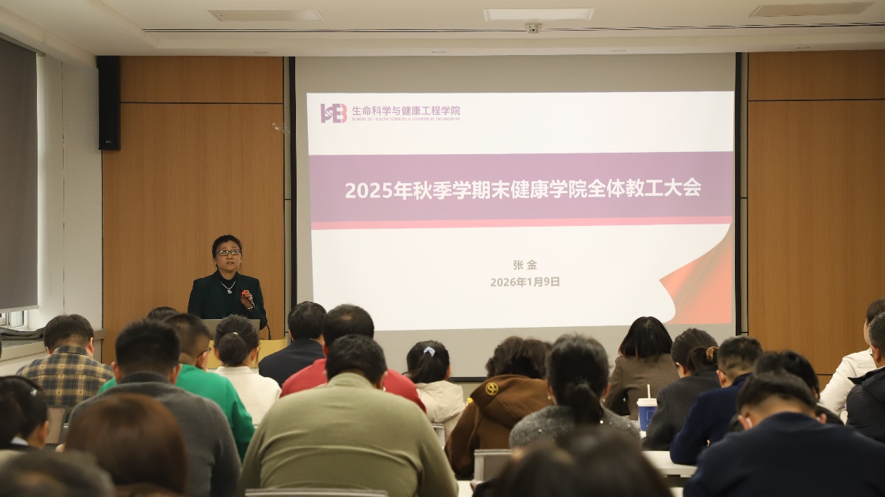 1月9日,生命科学与健康工程学院召开2025-2026年度秋季学期全院教职工大会,全面总结2025年工作,谋划“十五五”时期发展思路与战略目标,部署2026年重点任务,并举行年度“健康星”颁奖仪式。学院全体教职工参会,会议由学院副书记张轶主持。